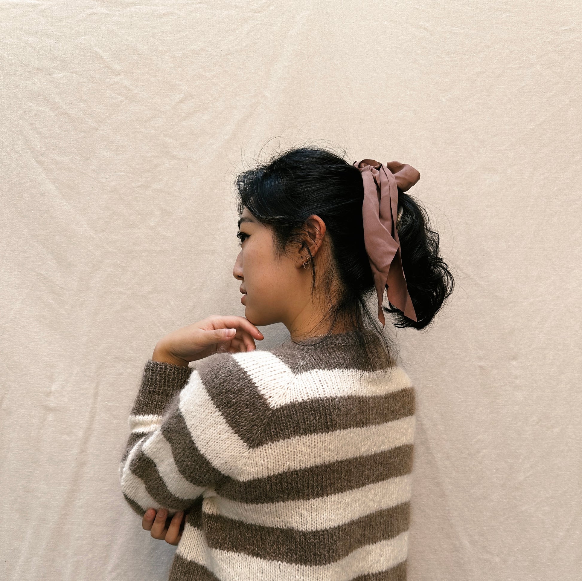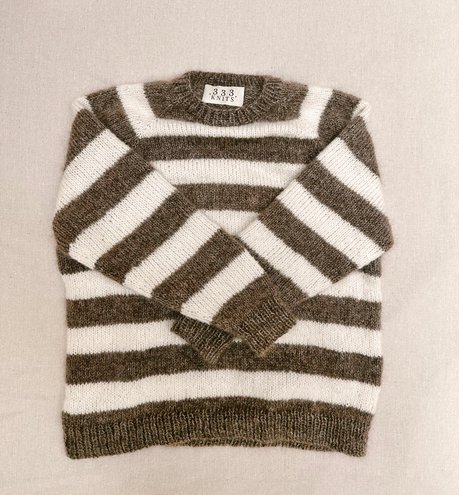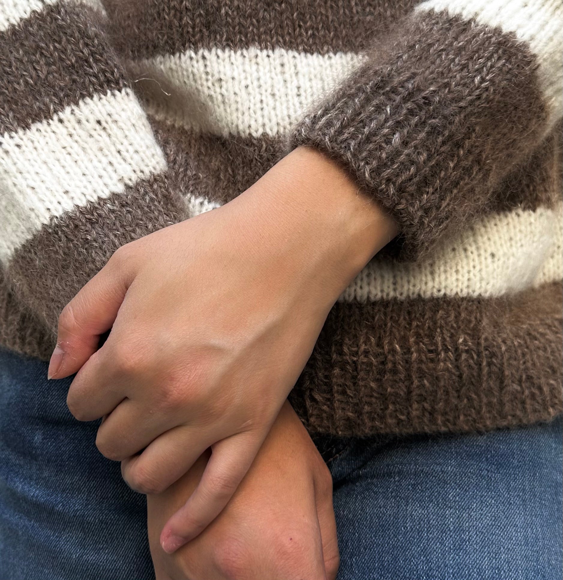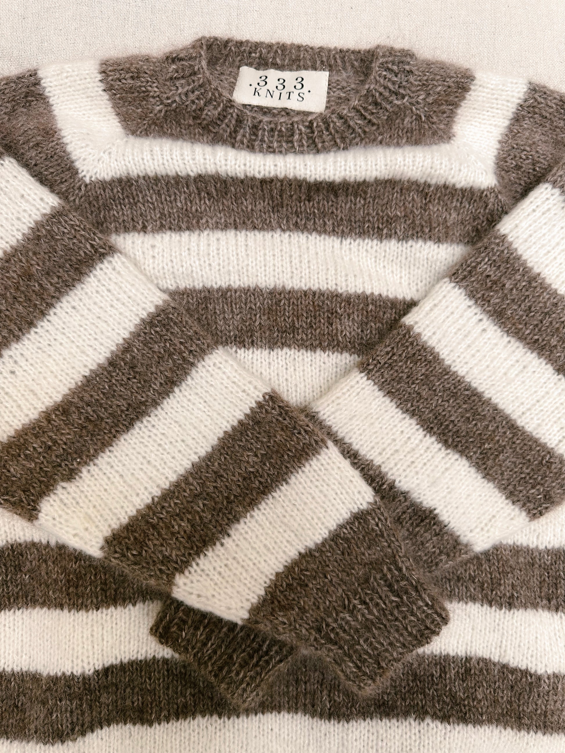 The Squirrel sweater is a classic in its own right. Alternating stripes of cream yarn compliment warm taupe stripes, neither grey nor brown. A versatile neutral, you'll want to wear it all season.